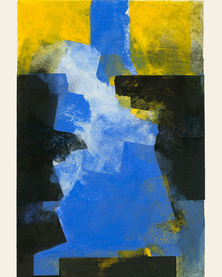 huile sur papier Arches 19 x 28 cm Golgotha bleu
