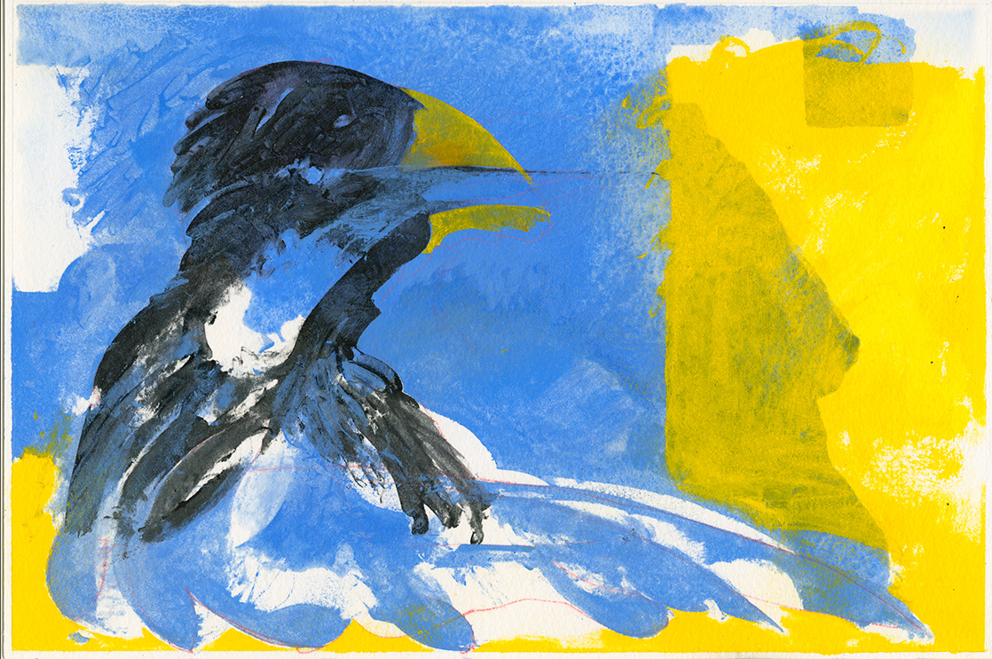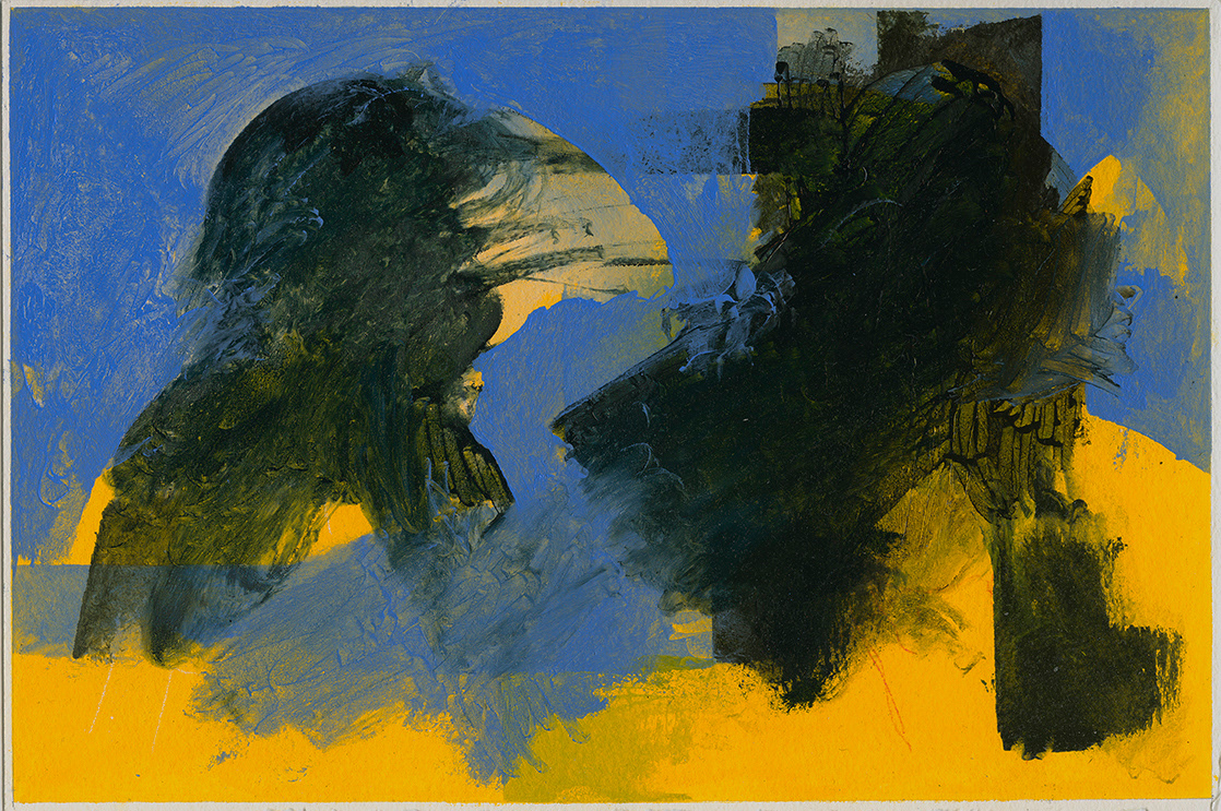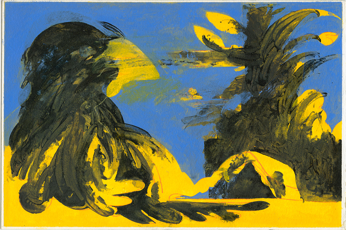huile sur papier Arches 19 x 28 cm Golgotha bleu